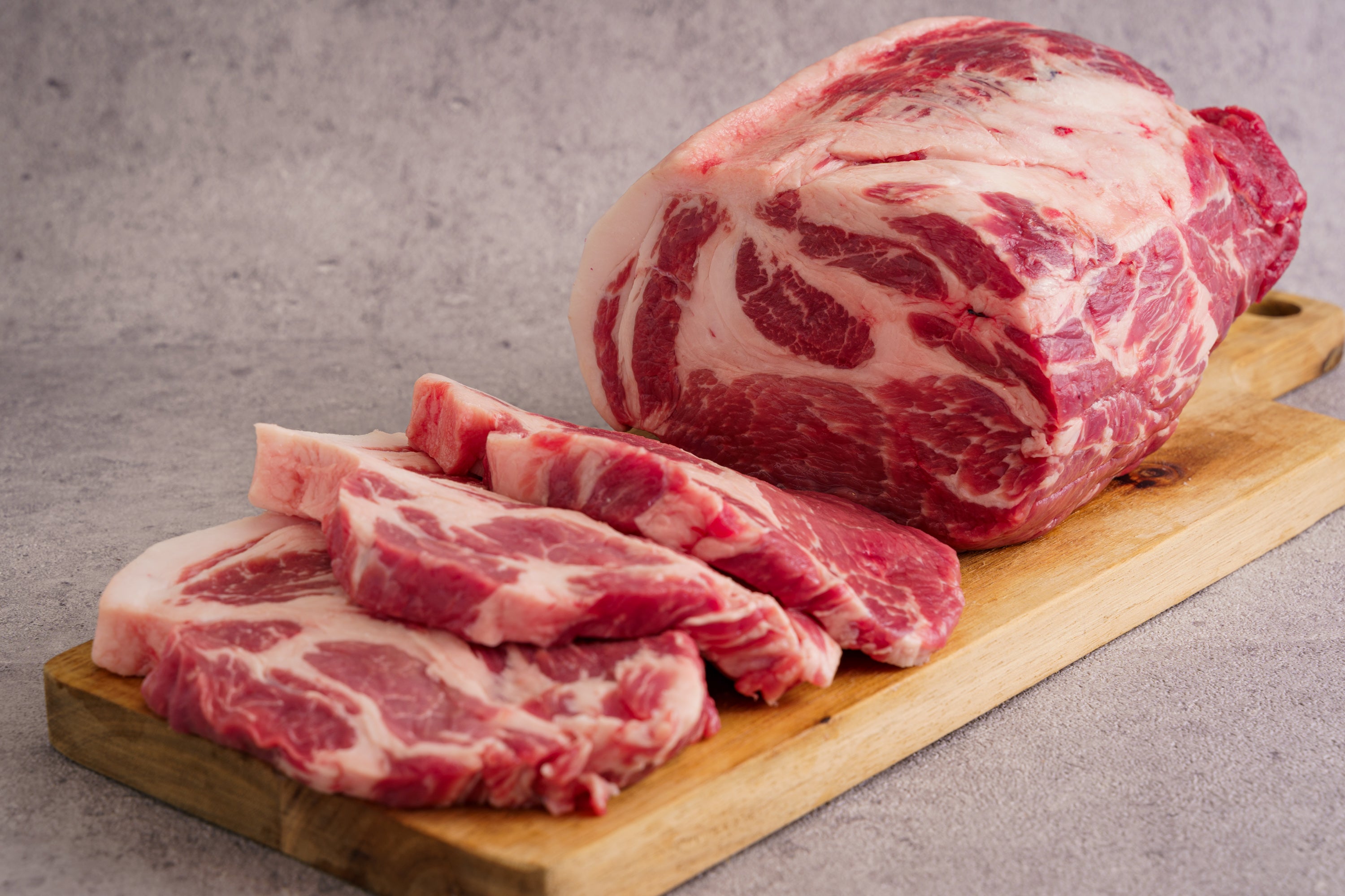 豚の前足から真っ直ぐ伸びた頭に近い部位。脂が細かく赤みの中に広がっているので、脂身と赤身の良さを一挙に味わえます。力強い肉の旨みをご堪能ください。